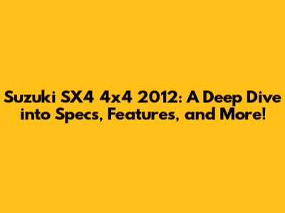 Suzuki SX4 4x4 2012: Specs, Features & More!