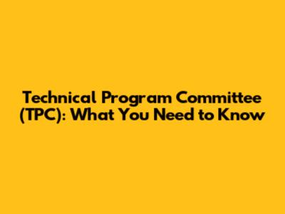 Technical Program Committee (TPC): What You Need To Know