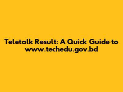 • A: Not necessarily. While www.techedu.gov.bd is an official portal, often used for specific educational initiatives or examinations associated with Teletalk, Teletalk might also publish results on its own official website or through other designated platforms, depending on the nature of the result. Always refer to the original notification or announcement for the precise location where results will be published.