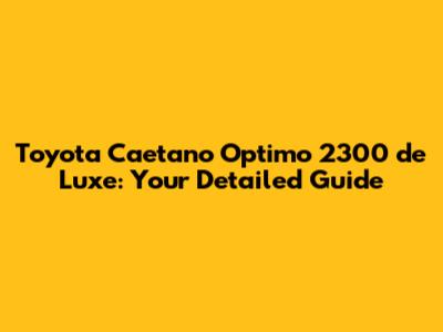 Toyota Caetano Optimo 2300 De Luxe: Ultimate Guide