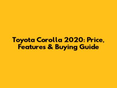 Toyota Corolla 2020: Price, Features & Buying Guide