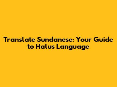 Translate Sundanese: Your Guide To Halus Language