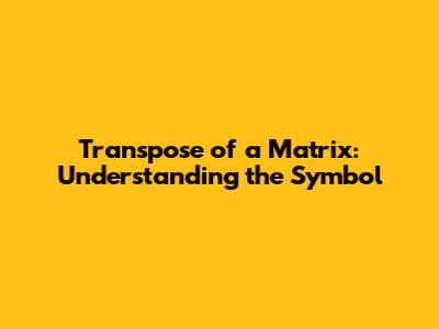 Transpose Of A Matrix: Understanding The Symbol