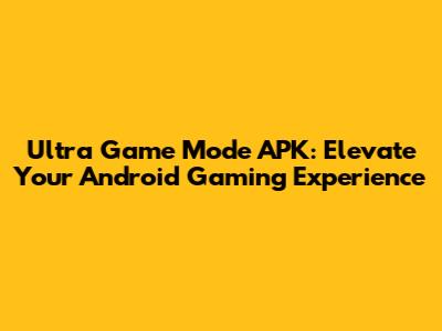 Ultra Game Mode APK: Boost Your Android Gaming