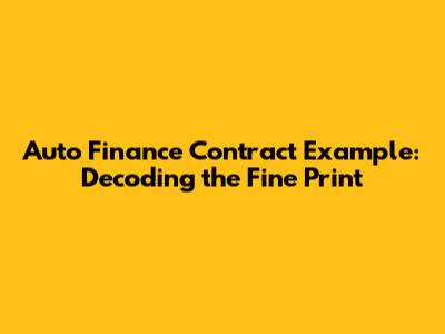 Understanding Auto Finance Contracts: A Clear Example