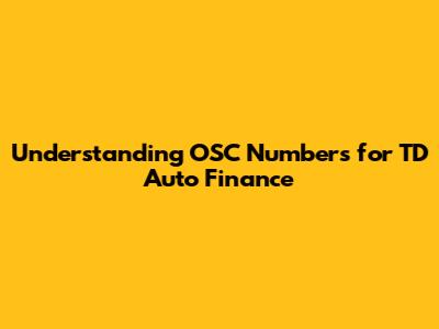- A: No, the OSC number is distinct from your loan account number. The OSC number identifies the source of your application, while your loan account number identifies your specific loan within TD Auto Finance's system.