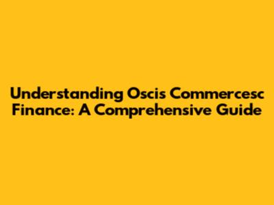 Understanding Oscis Commercesc Finance: A Comprehensive Guide