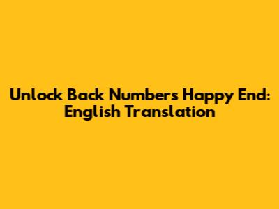 Unlock Back Number's Happy End: English Translation