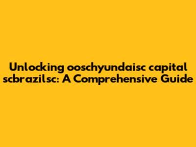 Unlocking Ooschyundaisc Capital Scbrazilsc: A Comprehensive Guide