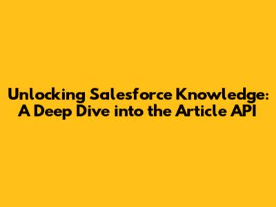 Unlocking Salesforce Knowledge: A Deep Dive Into The Article API