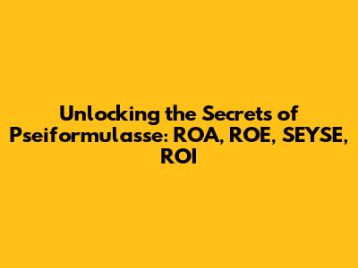 Unlocking The Secrets Of Pseiformulasse: ROA, ROE, SEYSE, ROI