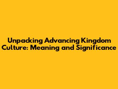 Hey guys! Ever heard the term "Advancing Kingdom Culture" thrown around and wondered, "What in the world does that even mean?" Well, you're not alone! It's a phrase that's gained traction in certain circles, and today, we're going to break it down. We'll explore the core meaning, the nuances, and why it matters. So, grab your coffee (or your beverage of choice), and let's dive in!