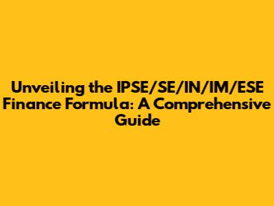Unveiling The IPSE/SE/IN/IM/ESE Finance Formula: A Comprehensive Guide
