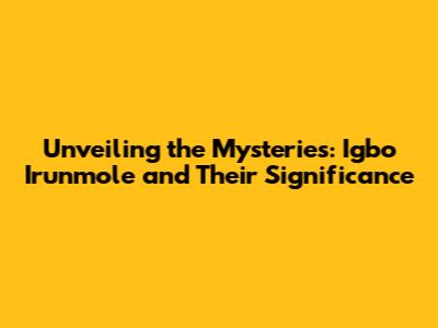 Unveiling The Mysteries: Igbo Irunmole And Their Significance