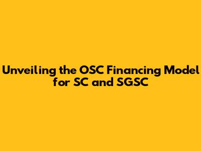 Unveiling The OSC Financing Model For SC And SGSC