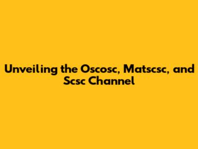 Unveiling The Oscosc, Matscsc, And Scsc Channel