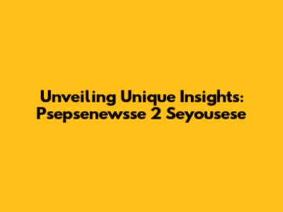 Unveiling Unique Insights: Psepsenewsse 2 Seyousese