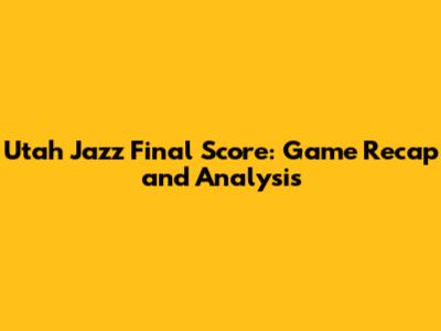 Utah Jazz Final Score: Game Recap And Analysis
